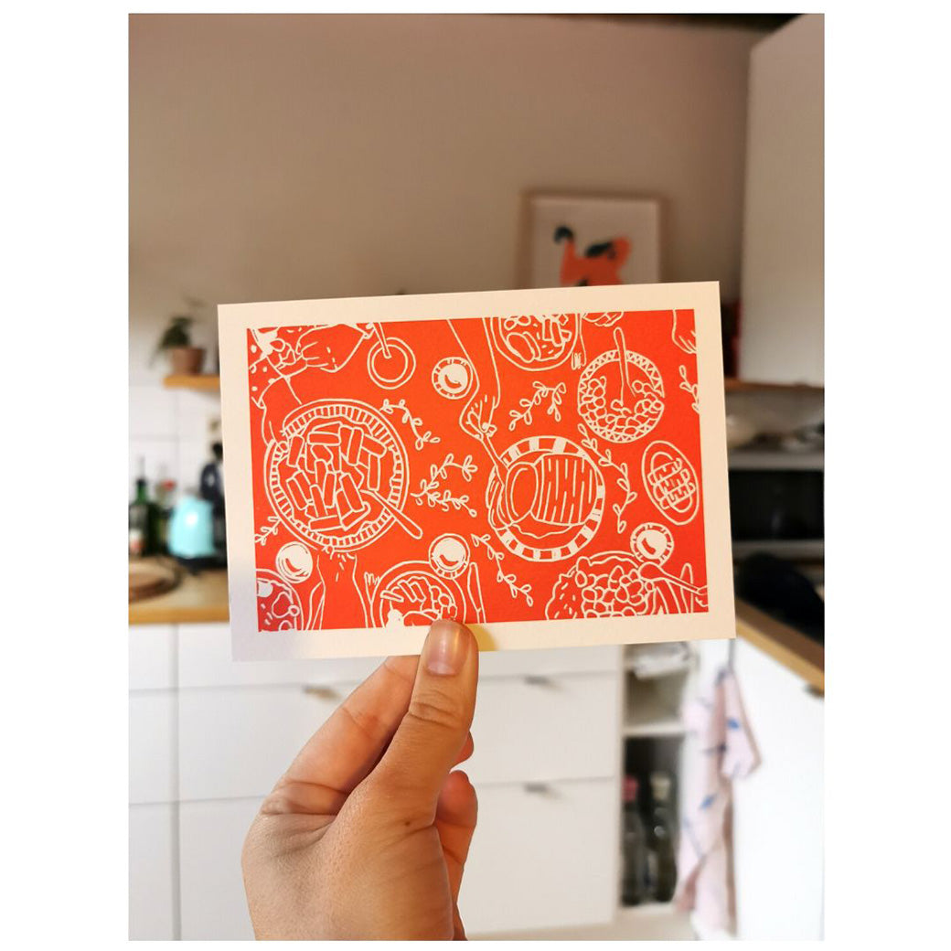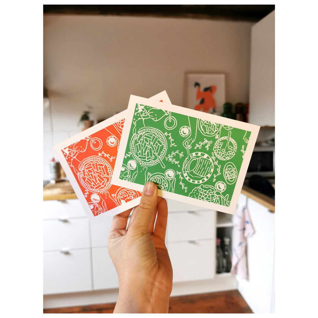 Deze kaartjes zijn niet met de hand gedrukt. Het zijn wél kwalitatieve reproducties van de handgedrukte ontwerpen, met dezelfde handcrafted-uitstraling en op heel stevig, zacht papier.