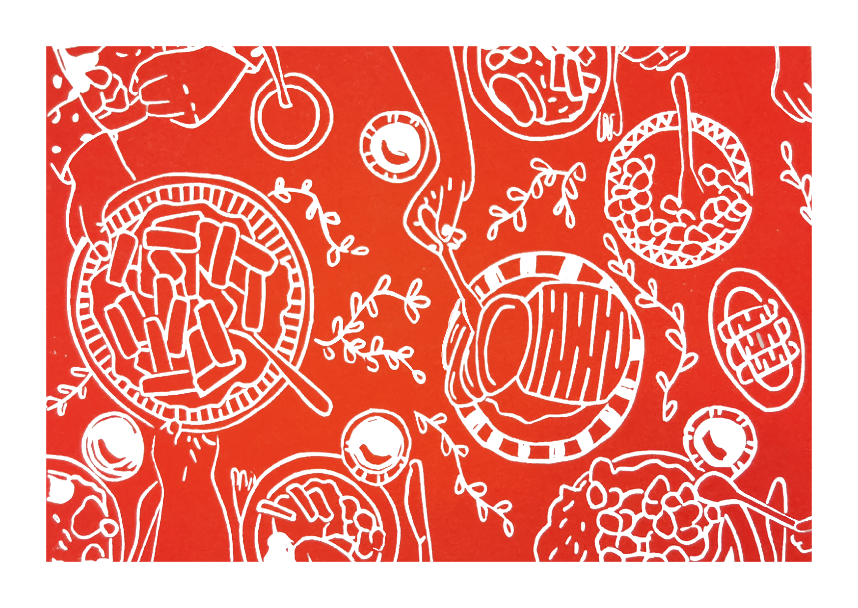 Kerstkaartje 'Kerstdiner'. Inclusief envelop.
