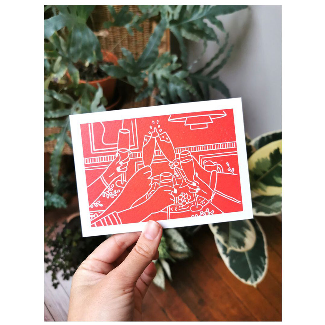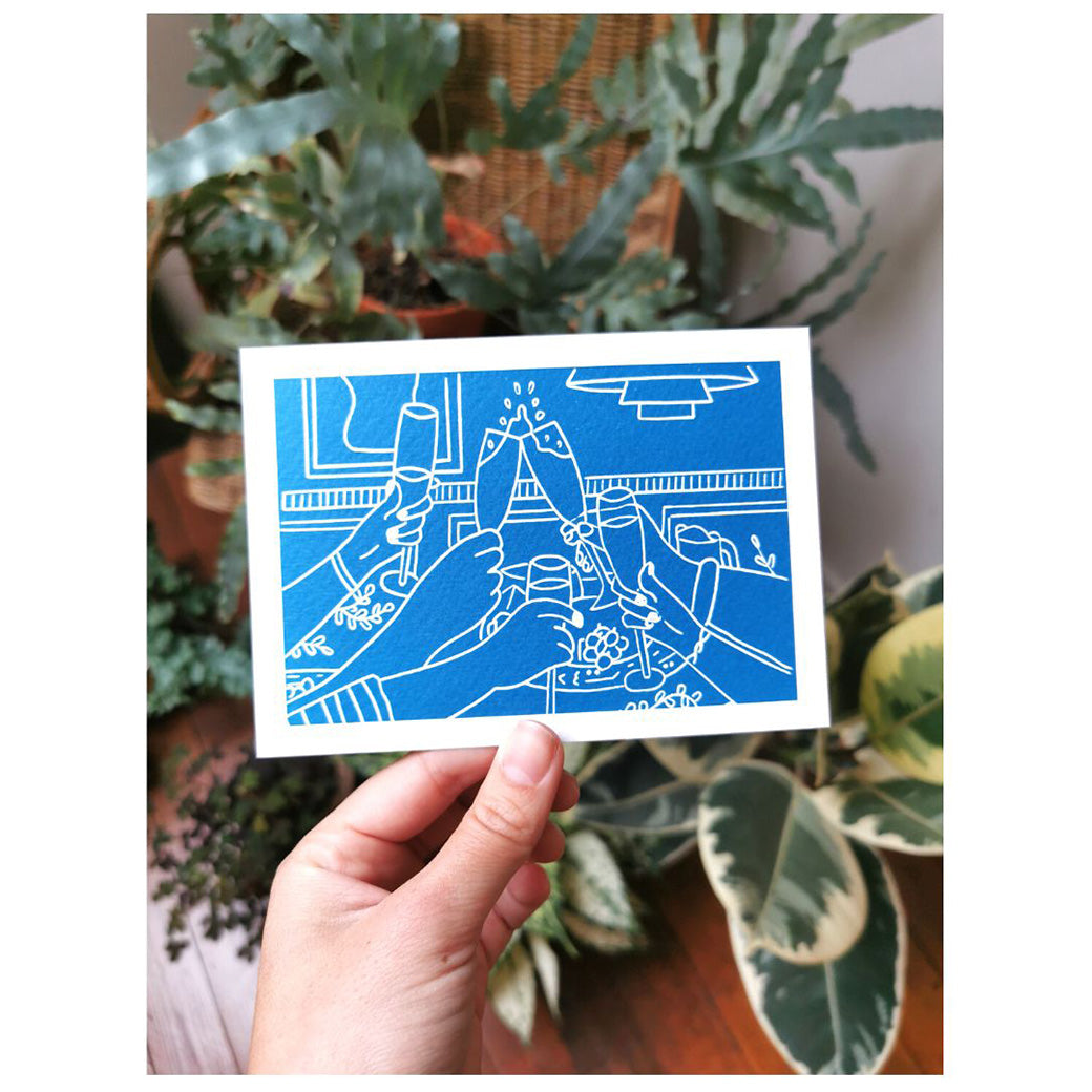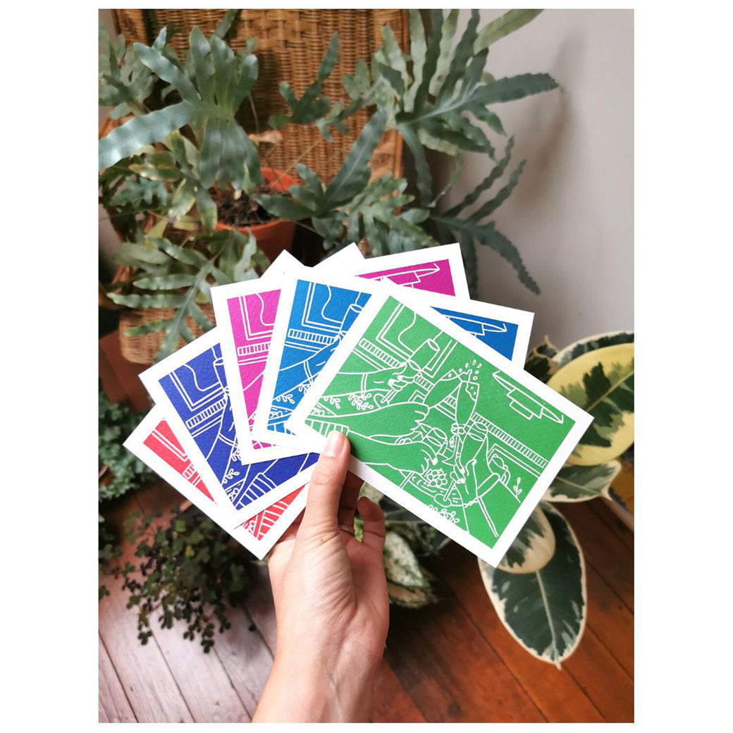 Deze kaartjes zijn niet met de hand gedrukt. Het zijn wél kwalitatieve reproducties van de handgedrukte ontwerpen, met dezelfde handcrafted-uitstraling en op heel stevig, zacht papier.