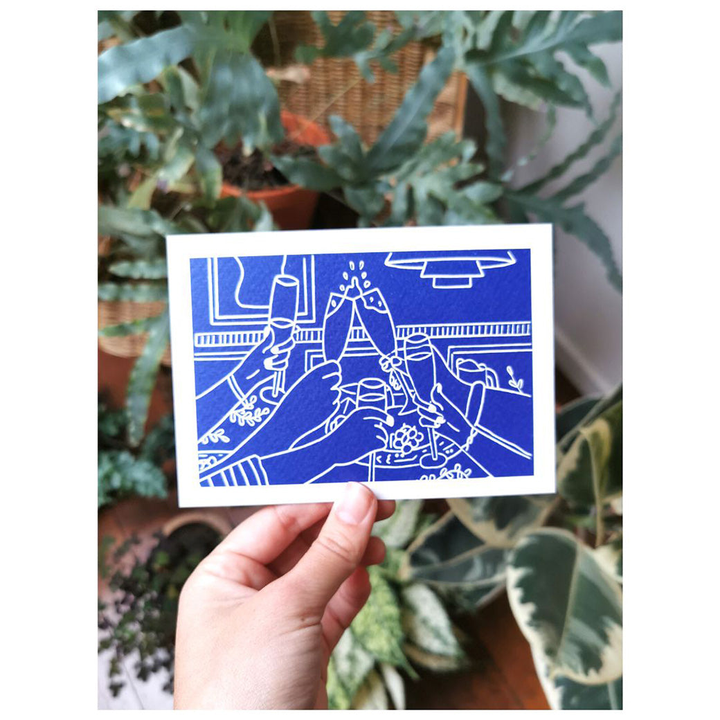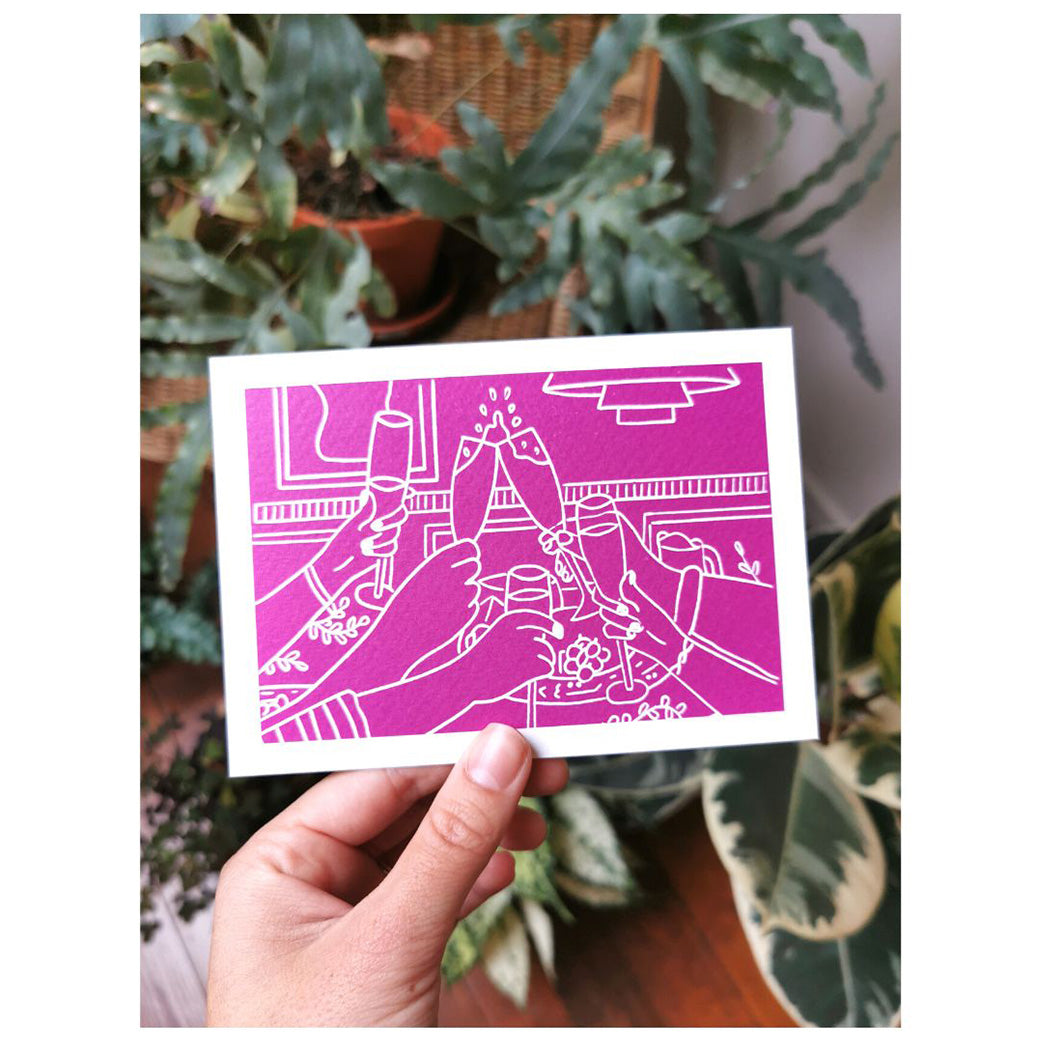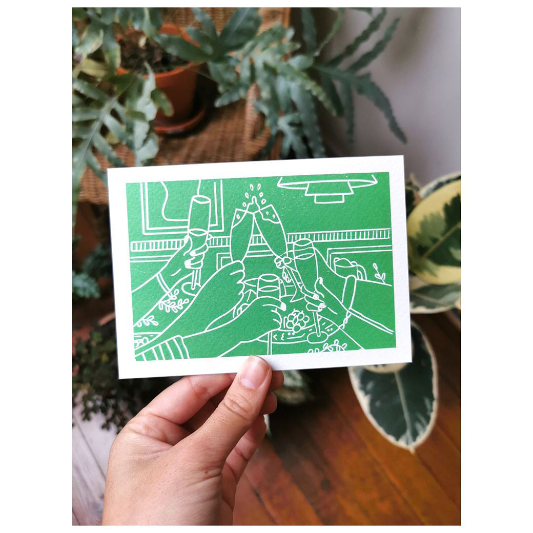 Deze kaartjes zijn niet met de hand gedrukt. Het zijn wél kwalitatieve reproducties van de handgedrukte ontwerpen, met dezelfde handcrafted-uitstraling en op heel stevig, zacht papier.